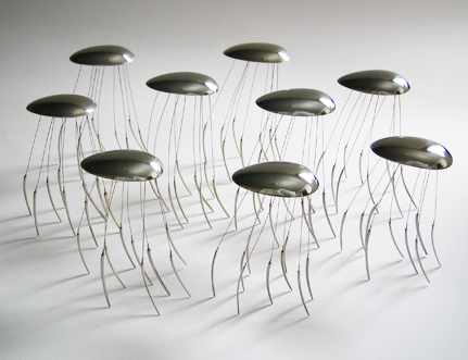 Published August 7, 2013 at 431 × 331 in Artwork The Walkers “The Walkers” 2012 Recycled cutlery, stainless steel, sterling silver, resin Grouped – H 18 x W 50 x D 40cm Largest unit – H 18 x W 7 x D 8cm Like Loading... ← Previous Next →